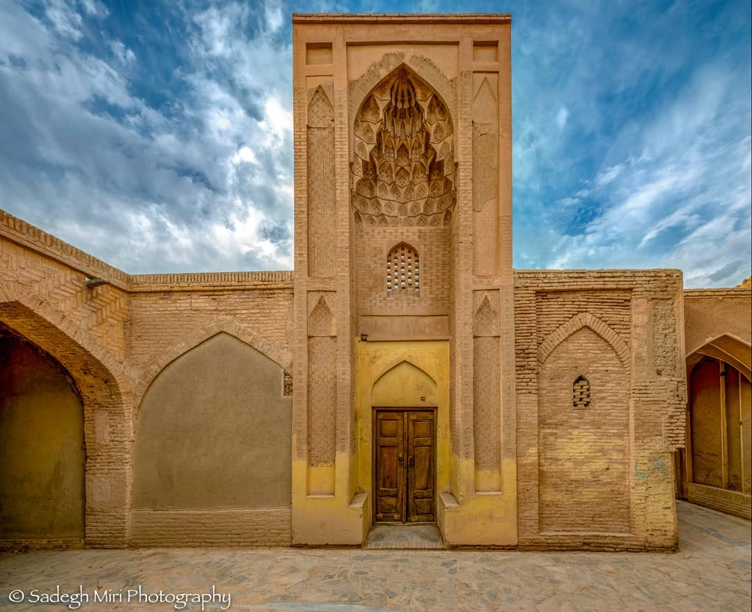۲- منبر:این منبر چوبی و تزئین شده با هنر منبت وبسیار زیبا در مجاورت محراب می باشد.در سمت چپ منبر و در قسمت فوقانی آن کتیبه ای وجود دارد با نام شاه محمود کرمانی و واقف آن به نام ملک التجار دیده می شود و تاریخ منبر متعلق به ۷۱۱ هجری قمری( قرن هشتم و حدوداً هفتصد سال ) می باشد